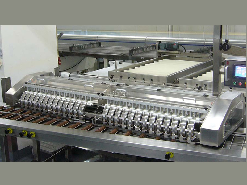 餅干通過整理排列,按設定數量以站立形式成單條裝入托盒或者放入無托盒包裝機的喂料輸送機上