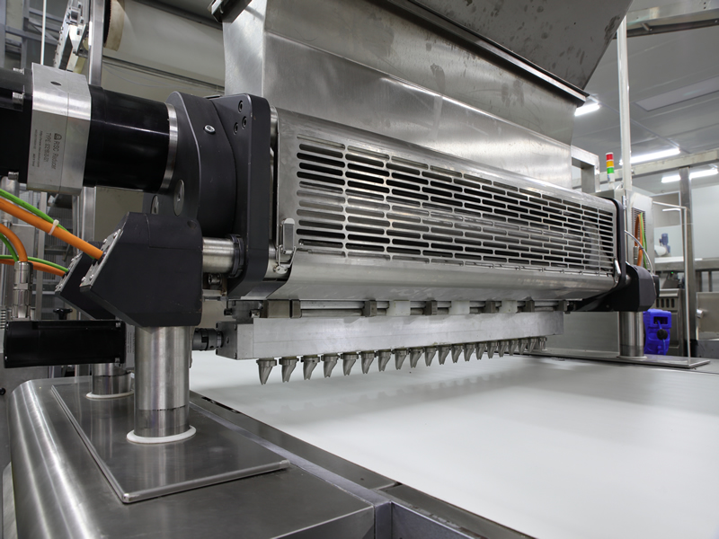 曲奇機能根據客戶對產品的不同要求,通過更換模具和設置生產模式等方式產出客戶所需產品備由伺服電機控制,所有可調節部位的參數設定均可在觸摸屏上實現,并且帶有配方儲存功能。雙排出料頭設計,產量大幅增加。定量泵和出料頭易拆卸,方便清潔。餅形可根據客戶要求進行定制。